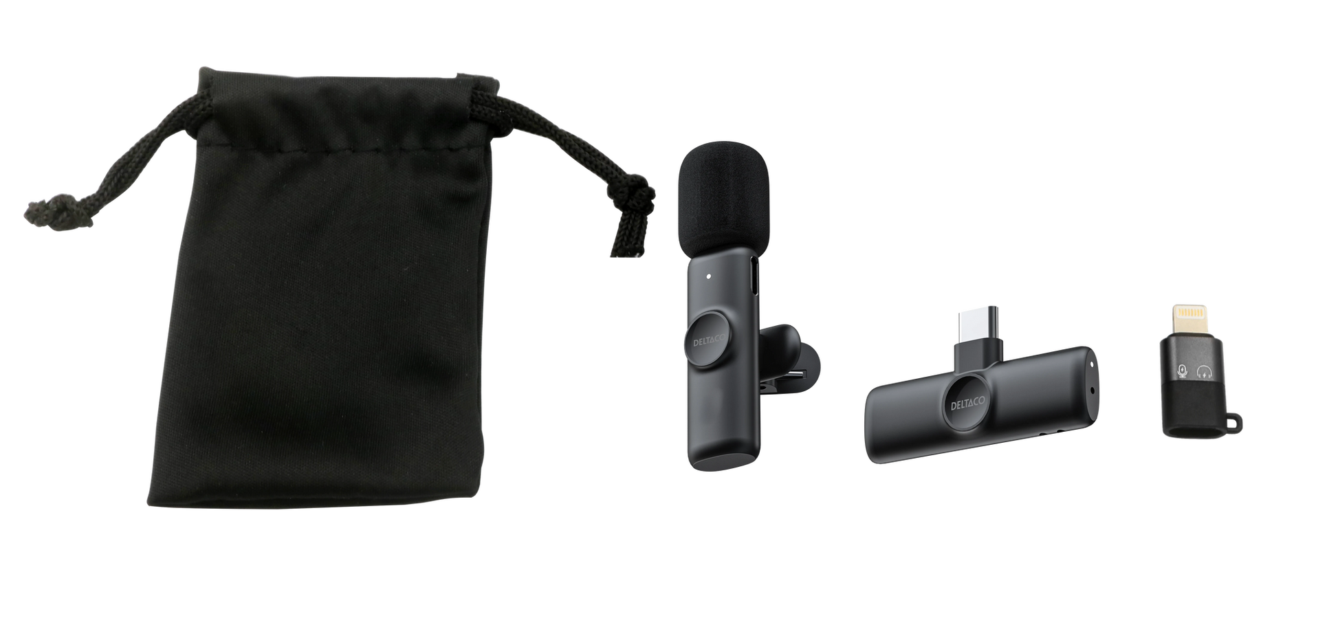 Deltaco Trådlös Vlog-mikrofon för iPhone & Samsung.-svart
