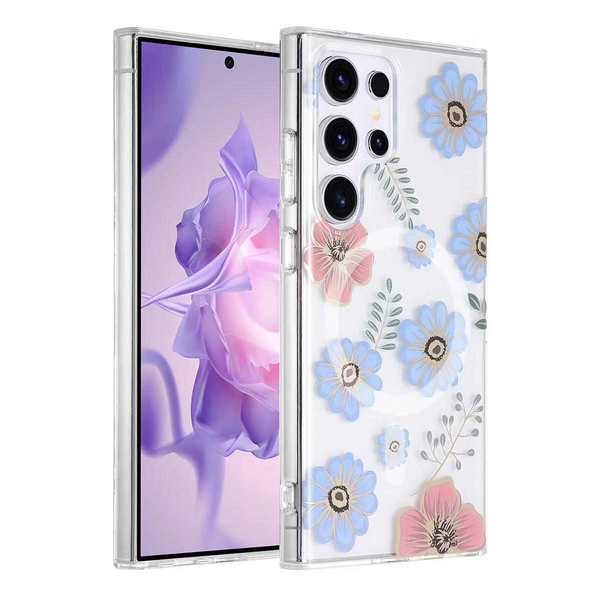 Samsung Galaxy S24 Ultra Magnetiskt Mobilskal - Blommor Röd/Blå