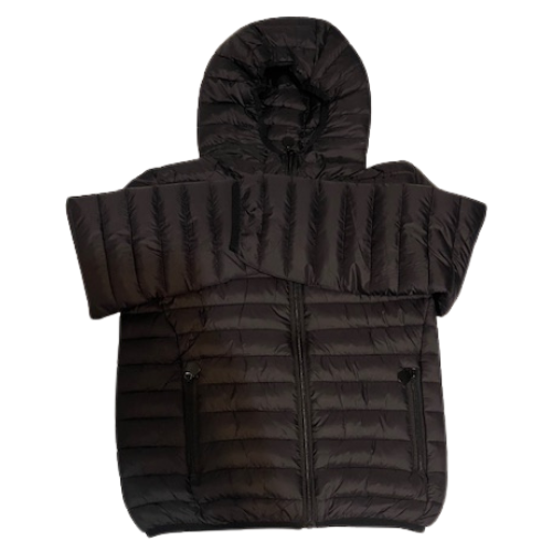 Stilren och varm svart lättviktsjacka med huva. Har dragkedja framtill och två praktiska fickor med dragkedja. Perfekt för kyliga dagar och enkel att kombinera med olika outfits.