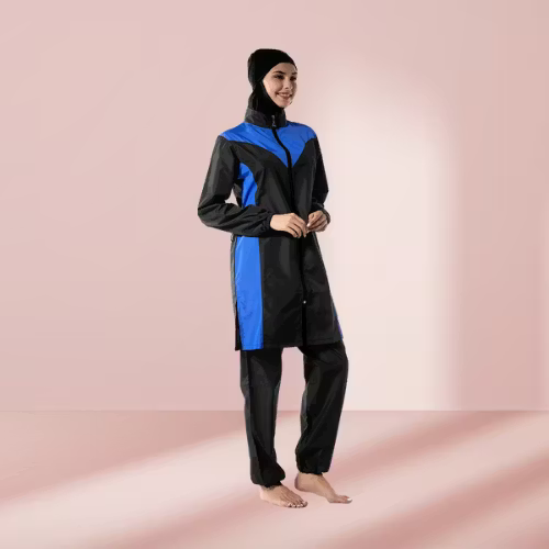 Elegant och täckande baddräkt i 3 delar – består av tunika, byxor och hijab. Tillverkad i 100% polyester som är snabbtorkande och lätt att simma i. Perfekt för dig som söker komfort och stil vid stranden eller poolen med modest täckning.